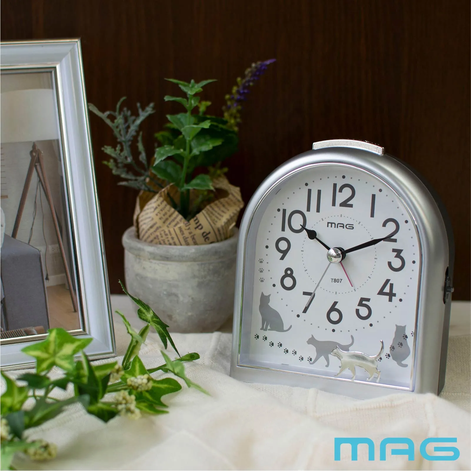 猫のシルエットがかわいい目覚まし時計