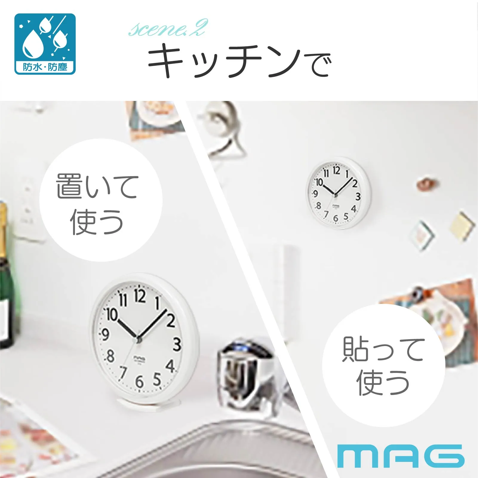 連続秒針、生活防水防塵(IP54)、置掛兼用、マグネット