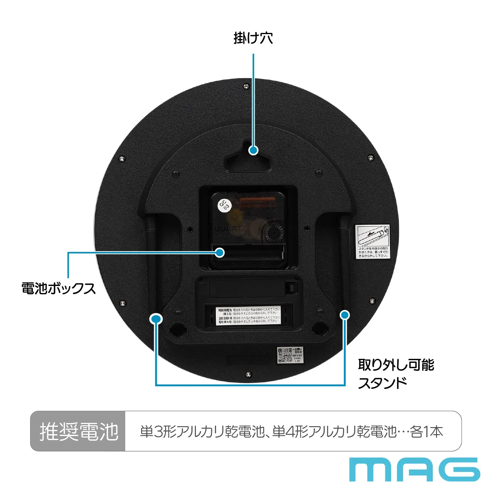 取扱説明書、保証書、スタンド(本体収納)