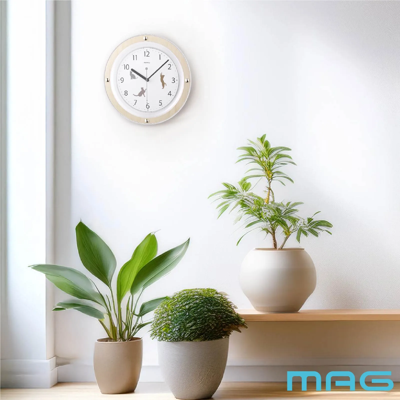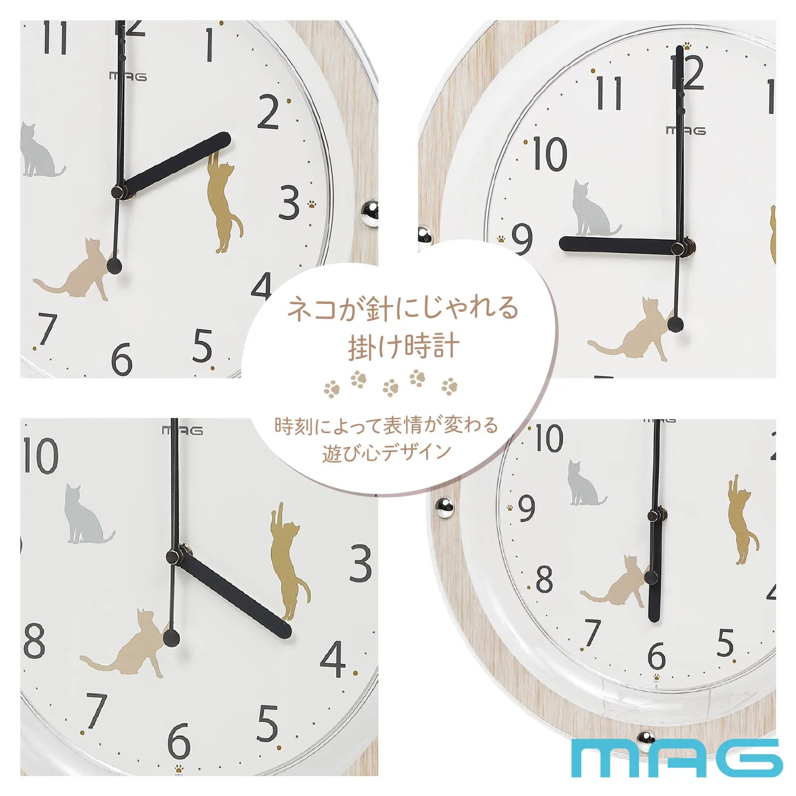 時間と一緒に遊ぶ猫。針とじゃれ合う姿で癒しを届けるデザイン時計