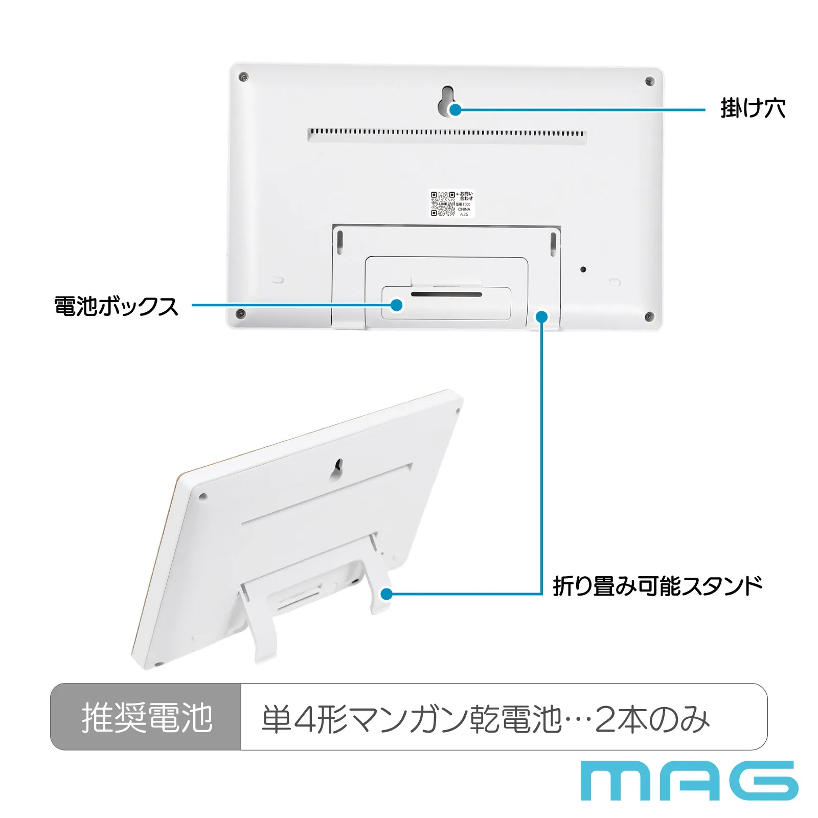 今がいつなのか?シンプルにわかりやすいデジタルカレンダー時計。「日付」と「曜日」1つ1つを大きな表示しています。冠婚葬祭にも便利な六曜表示
